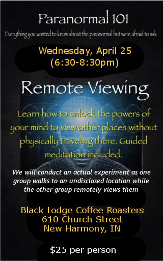 Remote viewing HNH Published April 2, 2018 at 320 × 513 in Haunted New Harmony Events Like this:Like Loading...